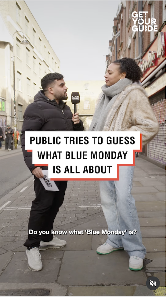 In a multi asset campaign we looked to highlight how Blue Monday is a lie. Through informative carousels, OOH display assets, cheeky vox pops and a presenter led day out with enough activities to make the saddest individual get a smile on their face. We made sure our audience knew that with the GetYourGuide app you can always have a good time with unique experiences at the touch of an app.